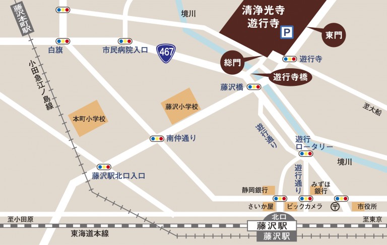 国道467号線を江の島方面へ進み、藤沢橋交差点を左折