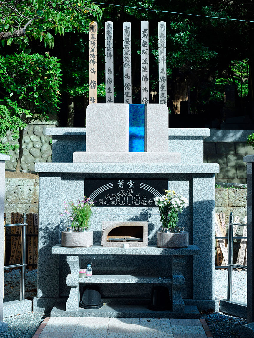 ペットのお墓「蒼空」は本堂のすぐ脇にあり、安らかに眠るペットたちに毎日本堂からの読経が届けられます。